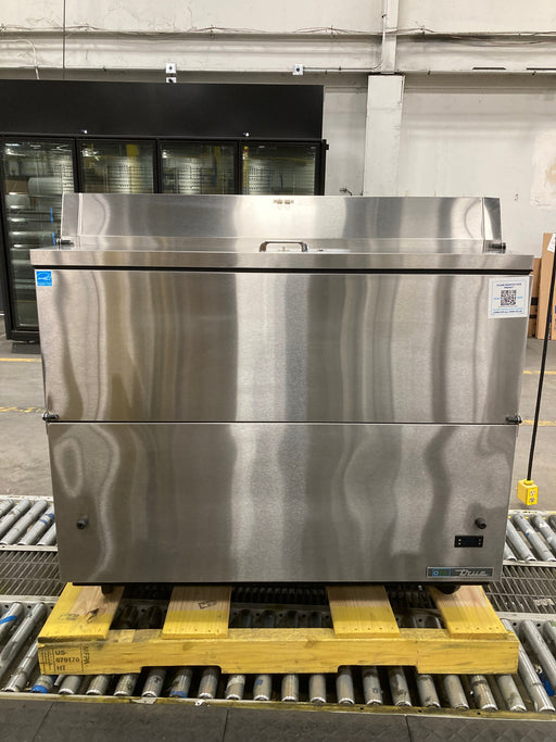 Discounted scratch & dent True milk cooler featuring robust stainless steel fabrication on all surfaces—proven to resist corrosion and simpl...